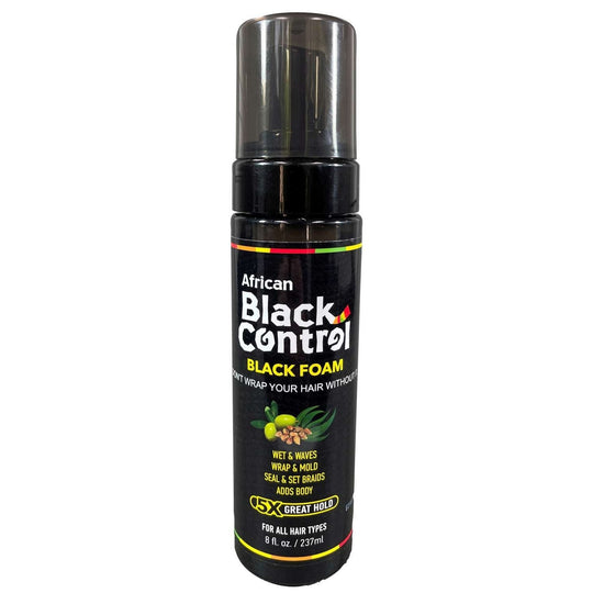 African Black Control Black Foam contains Grape Seed Oil that works as a perfect all-weather conditioner and Eucalyptus Leaf Oil helps soothe and calm the scalp. Its fast drying with no flaking or dulling white film and provides a long lasting frizz free hold.