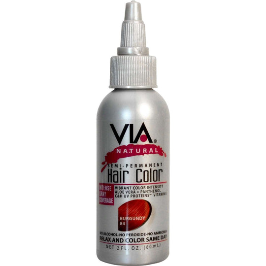 Are you sick of patchy and streaky hair color Try the Via Natural Semi-Permanent Hair Color in the shade Burgundy for a rich deep color application that covers all your greys and nourishes your hair. The formula contains aloe vera panthenol CH UV proteins and vitamin E to give your hair extra shine