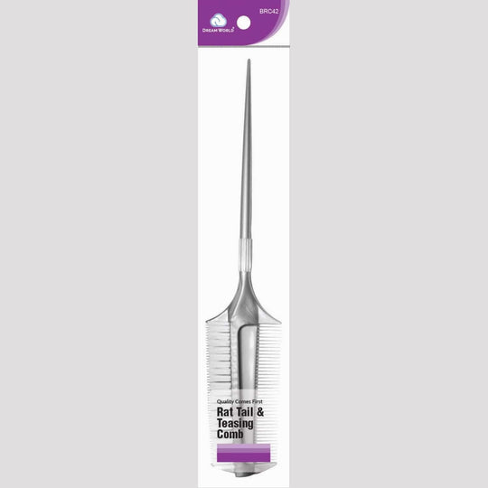 The Brittny Delux Rat Tail Teasing Comb Combo is a great tool for any professional hairstylist to use. The comb has short plastic bristles for teasing on one side a bristle brush for product application on the other side as well as a plastic rat rail for parting and sectioning.