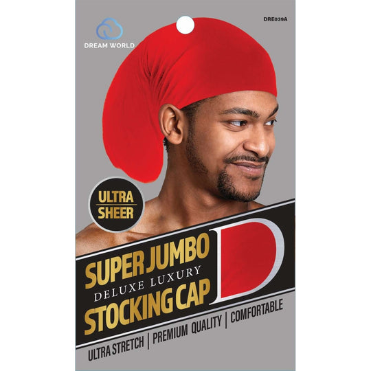 If you have long and thick curly hair it can be difficult to find a cap that can hold all of your hair. Check out the Dream World Super Jumbo Stocking Cap. It is made with superior quality materials is ultra-sheer and comes in the colors red blue and white.